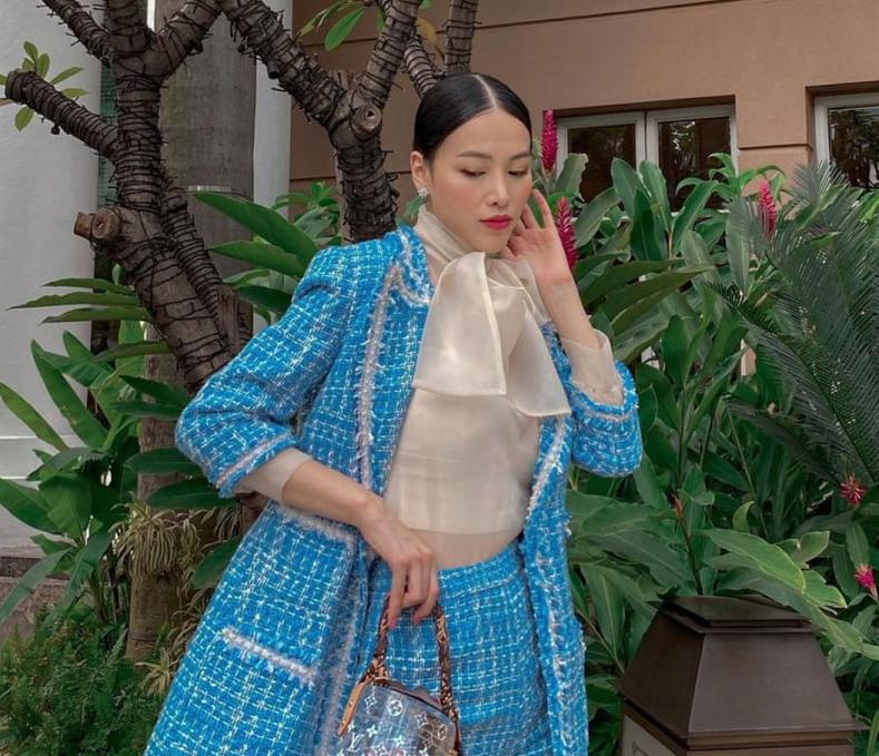 Muốn mặc áo vest nữ trẻ trung, bạn có thể tìm đến mẫu có họa tiết hoa. Rồi phối với quần màu sáng có tông hợp với họa tiết trên áo. Bạn cũng có thể chọn mẫu áo khoác bằng vải tweed như hoa hậu Trái đất Phương Khánh. Phối cùng quần đồng bộ hay với quần palazzo vải suôn đều đẹp.